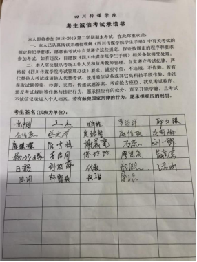 期末考试即将来临,老师呼吁同学们诚信考试、诚实做人,大家共同制订“诚信公约”,并签订诚信考试承诺书。