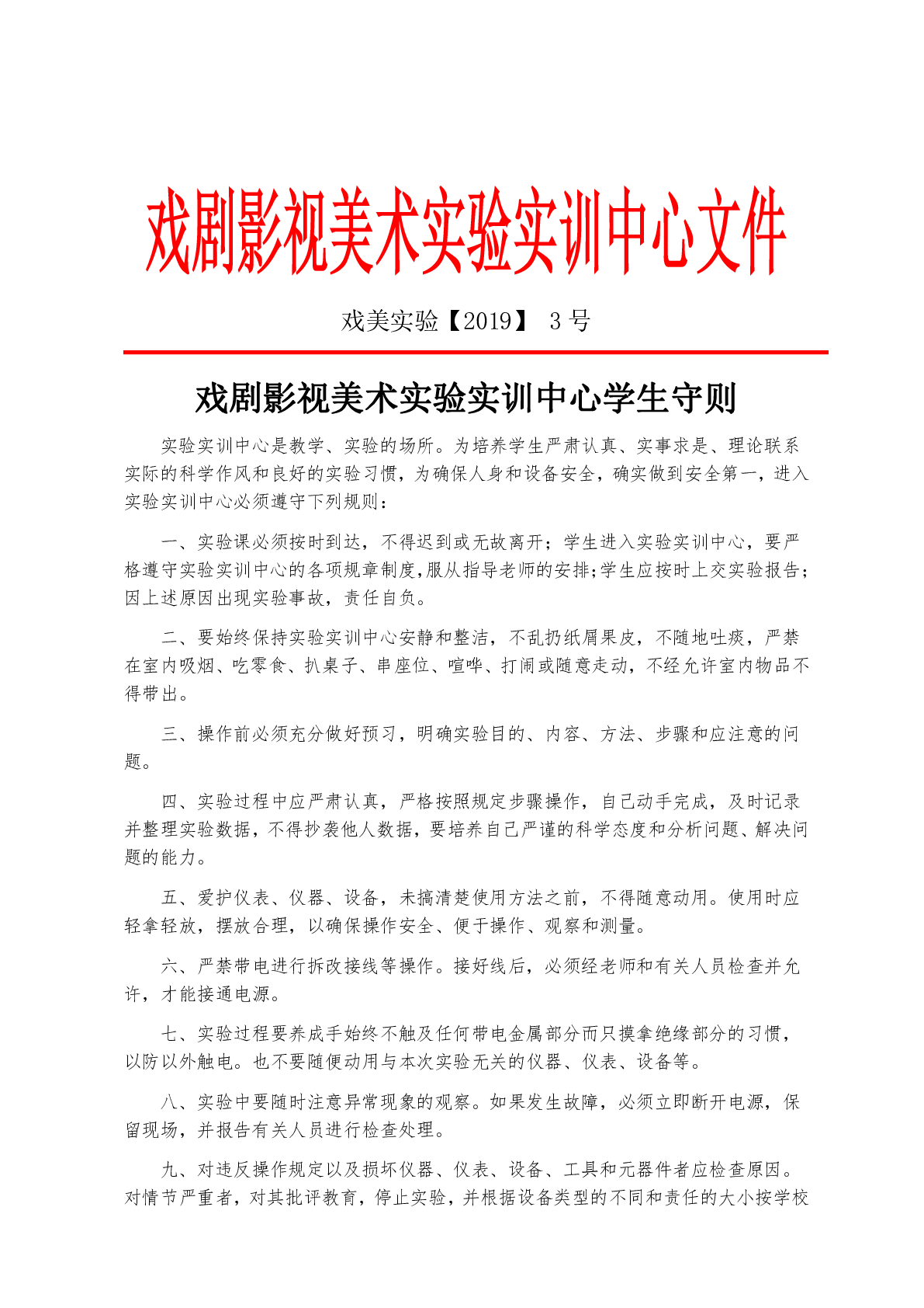 戏剧影视美术实验实训中心学生守则