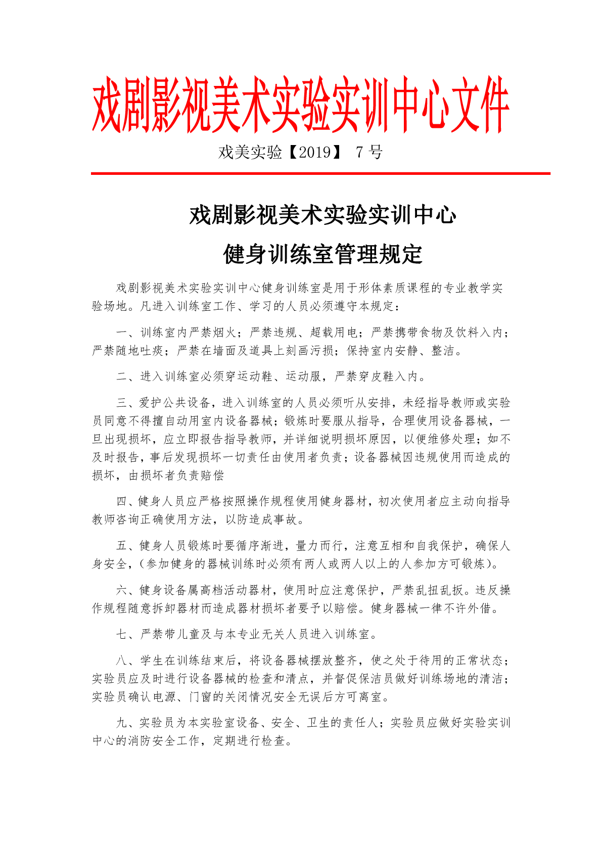 戏剧影视美术实验实训中心健身训练室管理规定