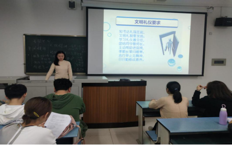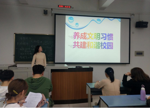 针对“六文明三拒绝”的内容进行宣讲,“六文明”为:文明学习、文明举止、文明着装、文明娱乐、文明寝室、文明就餐,“三拒绝”为:拒绝网贷、拒绝毒品、拒绝艾滋,对文明礼仪也提出了具体的要求。