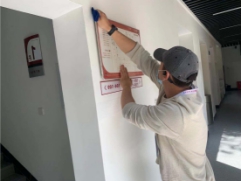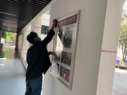 2.同学们擦除展示牌和门口铜像上的灰尘。