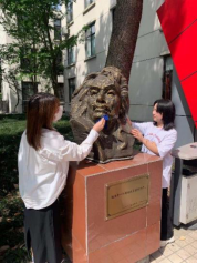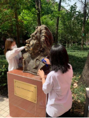 3.同学们对巴尔扎克铜像进行清理打扫。