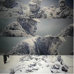 该部影片以长津湖战役为背景,讲述了一个志愿军连队在极度严酷环境下坚守阵地奋勇杀敌,为长津湖战役胜利作出重要贡献的感人故事 。任晓丽作为该片造型组中的物理特效化妆指导,在幕后反反复复优化每一个造型,并结合影片的剧情,为每一个特效的角色做到量身定制。