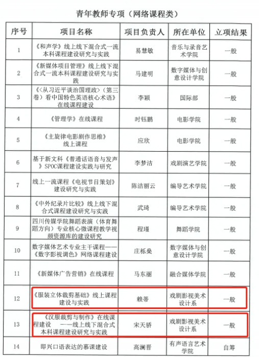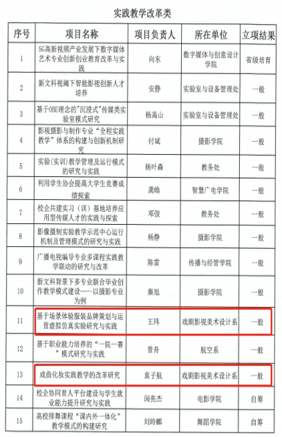 戏剧影视美术设计系成功立项教育教学改革项目17项