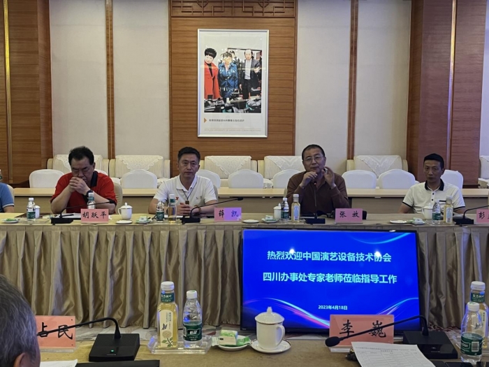 2023年4月18日,中国演艺设备技术协会四川省办事处常务副主任薛凯、副主任兼主任专家张放、秘书长胡跃平、副秘书长沈文军、唐桂华,行业专家彭勇军,会员单位代表杨彬、张雷一行来校交流访问,四川传媒学院副校长李巍、戏剧影视美术设计学院院长刘占民等会见来访。
