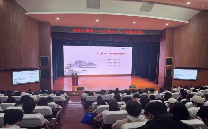 马教授在讲座中还提到,《红楼梦》这部著作里隐含着各种精妙的隐喻与伏笔,对《红楼梦》进行现代阅读剖析,能够让它更容易进入现代读者的阅读视野。他以“世事洞明皆学问,人情练达即文章”作引,为同学们展现了《红楼梦》中丰富多彩的人物情节和深刻朴素的哲理启示。例如以林黛玉的家族人物为切入,详细分析了林黛玉初会时的言语描写所体现出的中国传统礼制;以《红楼梦》中涉及医药卫生方面的知识,引出中医文化,生动形象地揭示了其对中国传统文化的影响。
