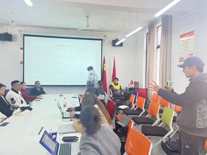 时尚演艺专业邀请四川传媒学院教学竞赛获奖教师为新进青年教师做备课、教学设计、讲课等经验分享,解答青年教师关于备课、教学设计、师生互动等方面的疑问,帮助老师们认识自身不足,改进教学设计。