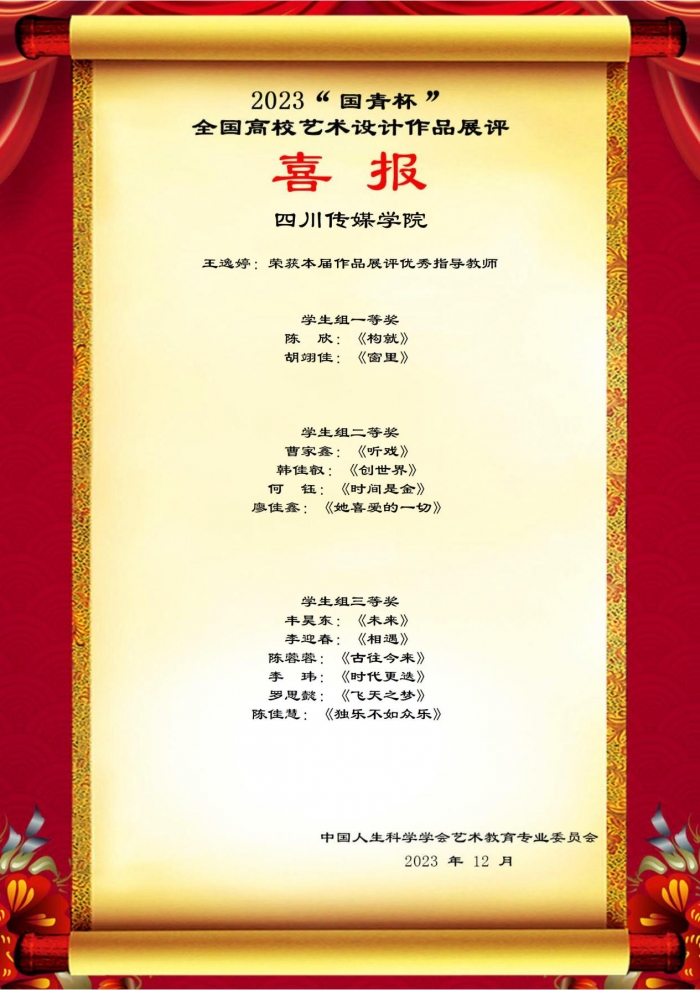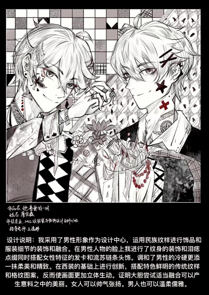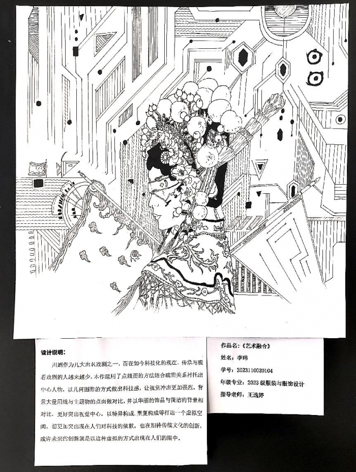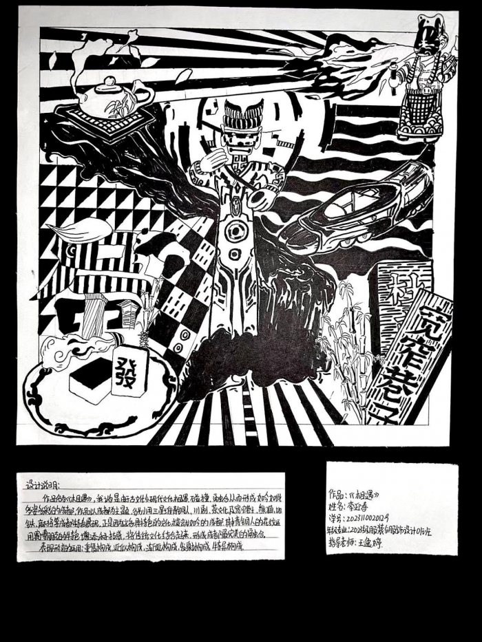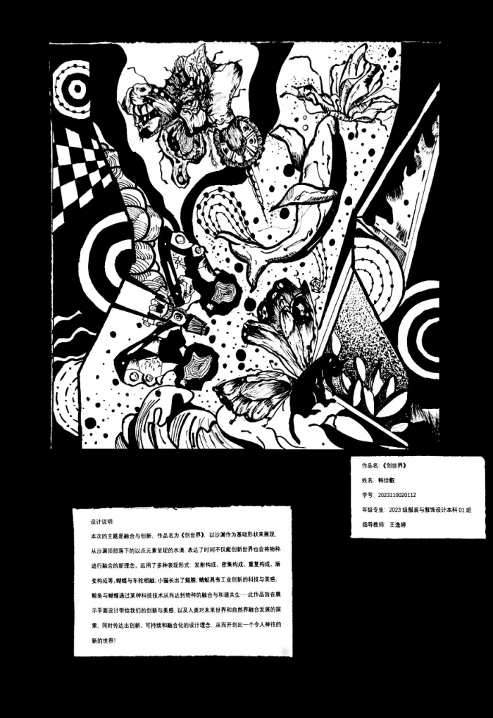 本次《平面构成》课程综合设计实践以“融合·创新”为主题,四川传媒学院服装与服饰设计2023级的同学们通过学到的知识进行了平面构成设计,并且在2023“国青杯”全国高校艺术设计作品展评中取得了优异成绩!