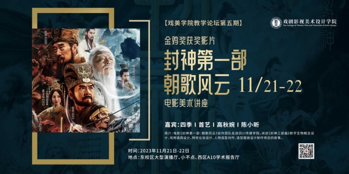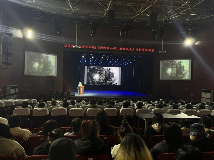 讲座简介: 2023年11月21日-22日,四川传媒学院戏剧影视美术设计学院邀请电影金鸡奖获奖影片《封神第一部:朝歌风云》创作团队到校,为师生分享讲述了《封神三部曲》数字生物概念设计、戏用道具设计、特效设计、人物造型创作、造型服装设计与制作背后的故事。