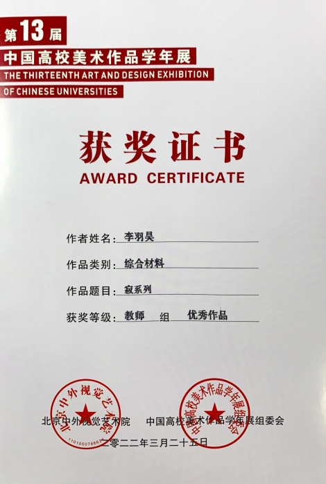 (李羽昊教师作品入选“望:当代中国艺术展”)