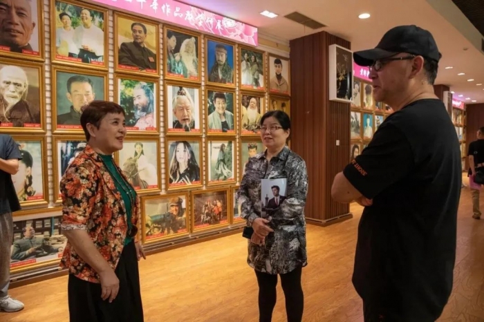 (袁子航副教授为著名演员张铁林做造型)