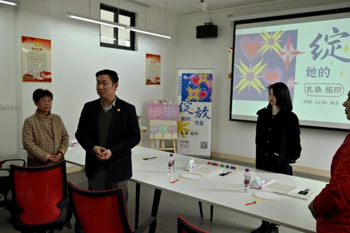 四川传媒学院副校长、工会主席李巍,工会副主席金淑艳出席活动并致辞,李校在活动中亲切表达了对女教工的节日问候,感谢女教工们辛勤耕耘,爱岗敬业,为学院的发展贡献了不可或缺的力量。随后各位老师亲手制作扎染作品,通过设计构图、扎、缝、染、晾晒等一道道制作工序,亲身体验扎染艺术的神奇。活动中老师及同学们都深刻感受到了扎染这一非物质文化遗产的魅力。