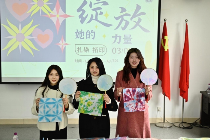 为迎接国际劳动妇女节的到来,增强教职工的凝聚力和幸福感,戏剧影视美术设计学院分工会举办了“巾帼心向党,奋进新征程”手工扎染活动,切实将党史学习教育和非遗传统文化结合,丰富校园文化生活,坚定中华民族文化自信。