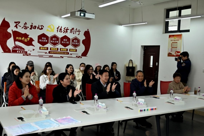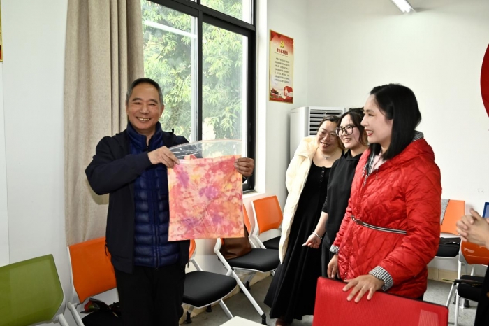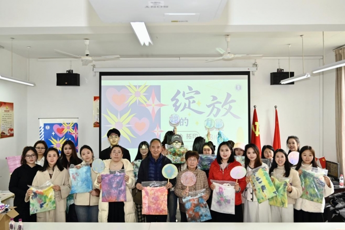 四川传媒学院副校长、工会主席李巍,工会副主席金淑艳出席活动并致辞,李校在活动中亲切表达了对女教工的节日问候,感谢女教工们辛勤耕耘,爱岗敬业,为学院的发展贡献了不可或缺的力量。随后各位老师亲手制作扎染作品,通过设计构图、扎、缝、染、晾晒等一道道制作工序,亲身体验扎染艺术的神奇。活动中老师及同学们都深刻感受到了扎染这一非物质文化遗产的魅力。