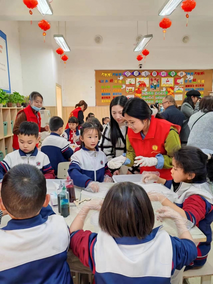 为落实立德树人根本任务,将非物质文化遗产充分融入学院美育课程体系,推动美育教育与非遗文化的融合与创新,激发学生对传统文化的兴趣和热爱,拓宽学生的知识面和视野,增强文化自信。2024年3月20日,在戏剧影视美术设计学院分党委指导下,戏剧影视美术设计学院先锋志愿者协会在成都市郫都区川科外国语学校开展以艺术浸润心灵,美育赋能成长——“非遗文化进课堂”为主题的美育活动,以丰富小学生的实践学习体验,为非遗文化注入新鲜活力,现场老师、学生家长代表、小学生共计48人参加。