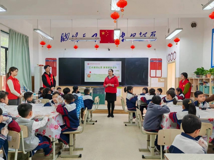 为落实立德树人根本任务,将非物质文化遗产充分融入学院美育课程体系,推动美育教育与非遗文化的融合与创新,激发学生对传统文化的兴趣和热爱,拓宽学生的知识面和视野,增强文化自信。2024年3月20日,在戏剧影视美术设计学院分党委指导下,戏剧影视美术设计学院先锋志愿者协会在成都市郫都区川科外国语学校开展以艺术浸润心灵,美育赋能成长——“非遗文化进课堂”为主题的美育活动,以丰富小学生的实践学习体验,为非遗文化注入新鲜活力,现场老师、学生家长代表、小学生共计48人参加。