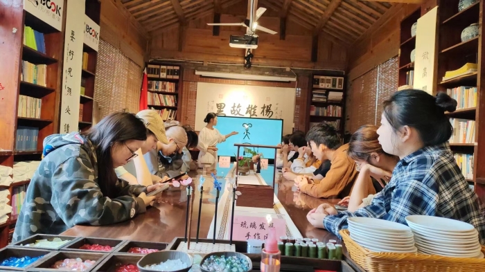 除了参观展览,扬雄学会指导教师还为学生举办了美育讲座,讲解了美的本质、艺术的价值以及如何在生活中发现美、创造美,学生们还在扬雄学会基地老师的指导下,开展了发饰制作活动,他们用自己的双手,创作出了具有个人特色的发饰作品,并进行了相互展示和交流。