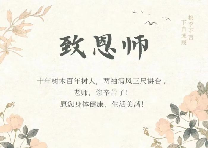 在这个属于教师的节日里,让我们怀着无尽的感恩,献上最诚挚的敬意。那些未曾说出口的感谢,那些未曾表达的感动,愿此刻化为心中最真挚的祝福,遥寄给曾经和现在的每一位老师。让我们共同祝愿,所有辛勤付出的老师们教师节快乐!愿你们在三尺讲台上的每一份付出,都化作学生们艺术道路上的光辉指引;愿你们的每一声叮咛和鼓励,成为学生心中永远珍藏的温暖力量。