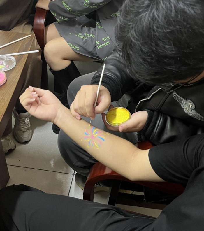 活动筹备之初,学院便精心策划,力求将传统与现代、民族与国际完美融合。从活动主题的确定到彩绘图案的设计,每一步都凝聚着组织者对艺术的热爱与对祖国的深情。而参赛者们更是热情高涨,他们来自不同专业,却都怀揣着对艺术的共同追求,用画笔在青春的画卷上绘出最绚烂的一笔。