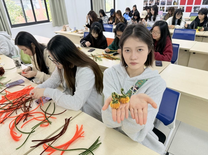 为进一步推动大学生美育教育,提高同学们的审美能力和艺术修养,11月7日,戏剧影视美术设计学院分党委在A3 314举办“立冬节扭扭棒,仿绒花柿柿顺”美育实践活动。旨在通过动手制作、艺术体验的方式,让同学们在立冬这一传统节气中感受艺术的魅力,同时加深对传统文化的理解与传承。