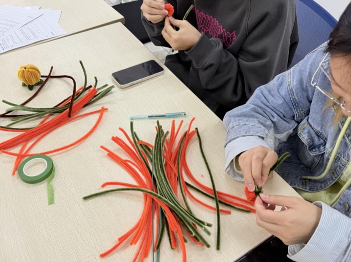 为进一步推动大学生美育教育,提高同学们的审美能力和艺术修养,11月7日,戏剧影视美术设计学院分党委在A3 314举办“立冬节扭扭棒,仿绒花柿柿顺”美育实践活动。旨在通过动手制作、艺术体验的方式,让同学们在立冬这一传统节气中感受艺术的魅力,同时加深对传统文化的理解与传承。
