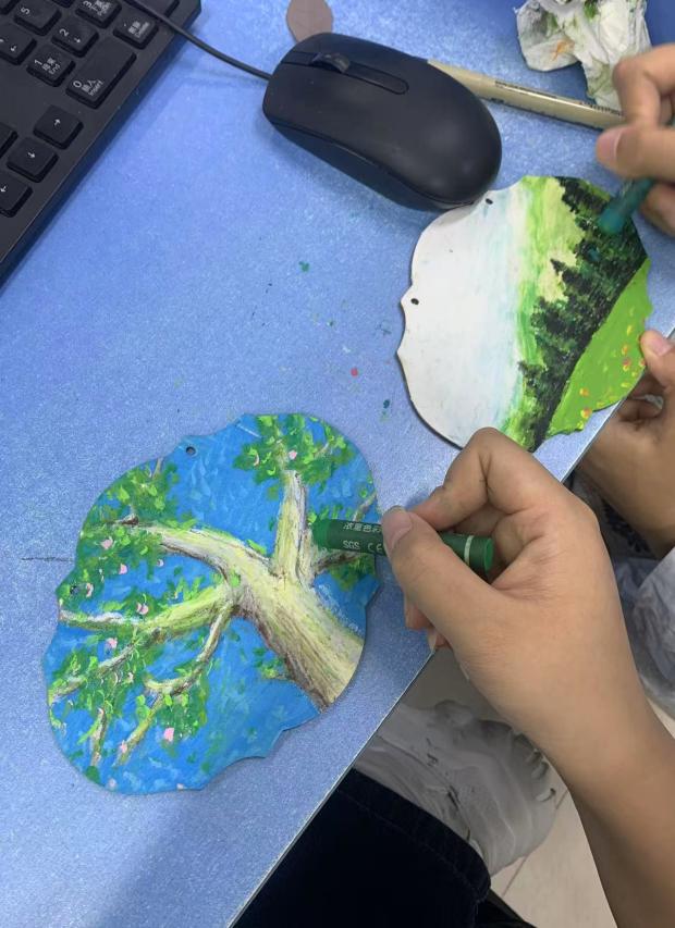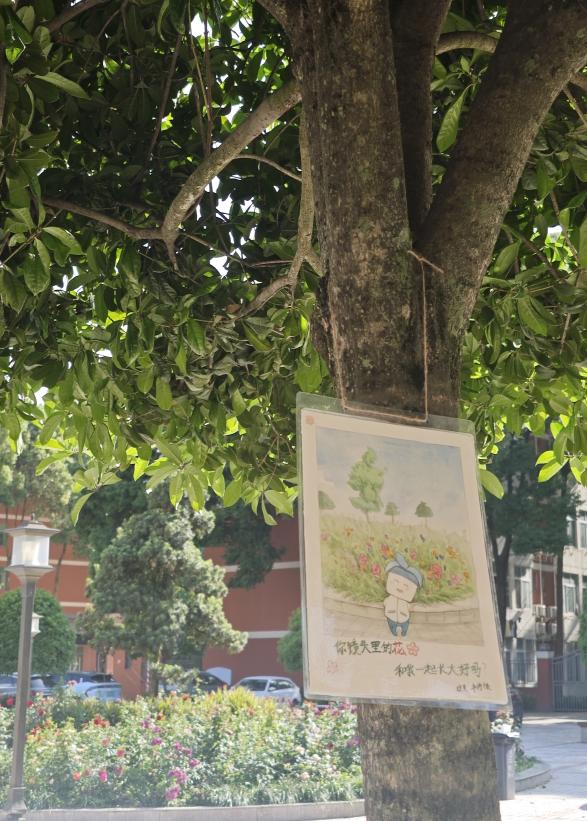 画笔之下,是建筑的线条、草木的色彩,更是学生对校园深情守望。此次活动周期为一周,参与活动的志愿者准时在指定地点领取活动所需的丙烯颜料、画笔、纸张或者木质挂牌等材料,同时鼓励学生自带创意颜料。结合校园文化、自然景观、学生生活等元素,学生自由组队,可分组协作,也能单独绘画。在活动截止时期,学生自愿捐赠自己作品,学院将优秀的作品挂在校园的角落与大家一起分享。校园“绘”变不再仅是视觉的盛宴,而是学生与校园共成长、同呼吸的生动注脚。
