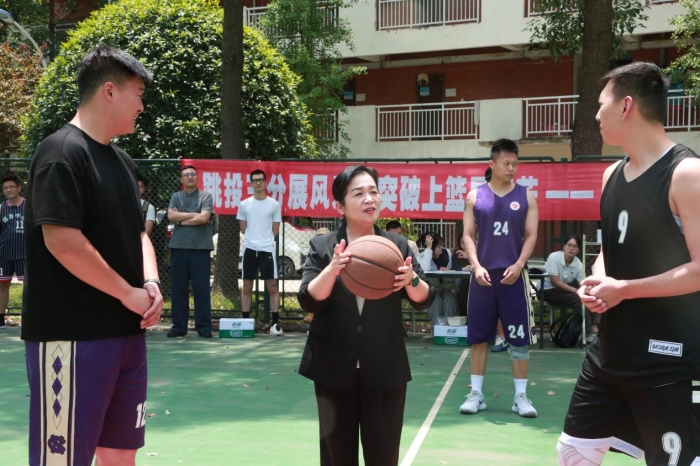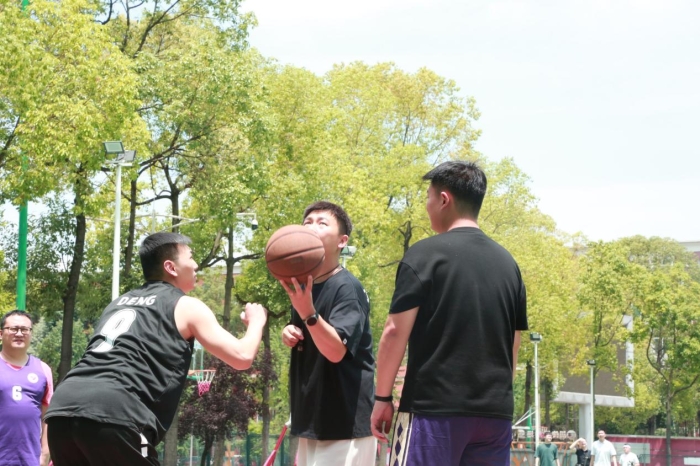 赛场上,老师们一改平日的严谨形象,化身为活力四射的运动健将。他们灵活穿梭,时而快速突破,时而配合默契,运球、传球、投篮、每一个动作都行云流水,仿佛篮球与手掌之间有一条无形的纽带,紧密相连。赛场外,观众们热情高涨,为老师们潇洒地投篮欢呼喝彩。每一个高光时刻都点燃了全场的激情,整个赛场样衣着欢乐与活力。