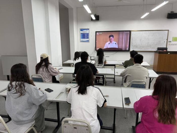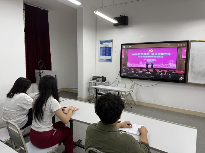 2025年5月30日上午9:30,戏剧影视美术设计学院以“线上+线下”融合模式组织师生参与四川省委组织部、省委教育工委联合主办的“传承红色基因 争当青年先锋”红色典型进高校宣讲活动。活动通过“四川党建”视频号直播形式展开,覆盖全院师生党员、入党积极分子及青年团员代表,同步设置三教201教室集中观看点,形成“云端+现场”的立体化学习场景。