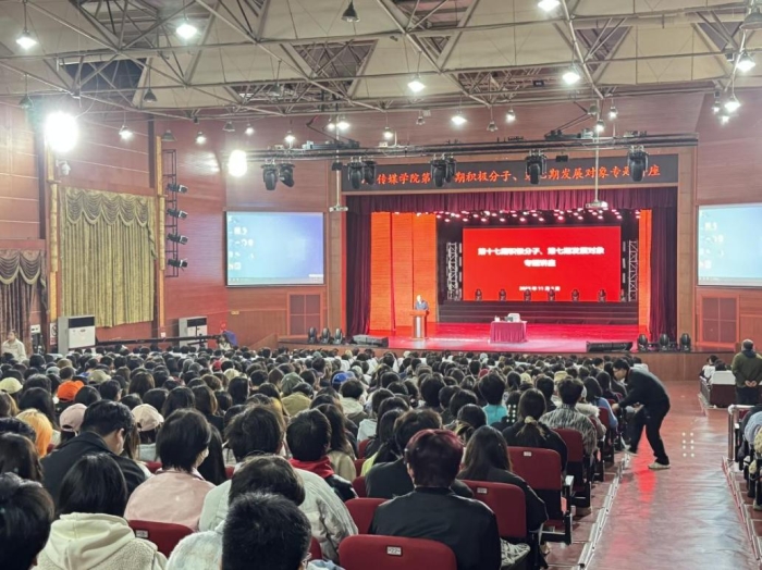 2025年11月5日,四川传媒学院戏剧影视美术设计学院第十七期入党积极分子与发展对象培训班迎来了一场别开生面的专题讲座。四川省残联宣传文体处刘敏同志以《淬炼·初心·担当——一名新时代共产党员的成长答卷》为题,结合自身从汶川地震幸存者到新时代青年党员的蜕变历程,为数百名师生上了一堂生动的党性教育课。