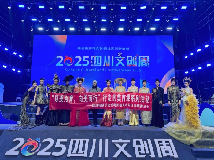 2025年12月12日,成都天府动漫城星光璀璨,2025四川文创周核心活动——由成都时尚产业协会打造的年度收官力作“天工丝韵”系列大秀,以开篇之作「新锐未来」华丽启幕。四川传媒学院戏剧影视美术设计学院携手行业力量,将“行走的美育课”搬进时尚秀场,时尚演艺学子身着华服,在秀场中将川蜀文化基因与Z世代创意视角完美融合,用扎根本土文化、兼具产业视野的创意走秀,为这场年度时尚盛宴献上了震撼人心的开篇序曲。